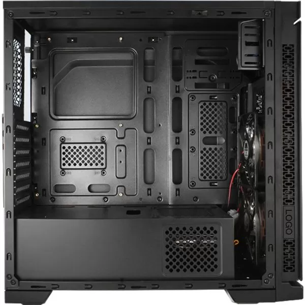 Segotep SG-K5 Black, SECC Steel ATX Mid Tower, fara sursa (tip ATX, montata jos), interior vopsit negru, 2x3.5” (intern), 3x2.5” (intern), design tool-less, fata – 2x 120mm Polar Wind Blue LED fans (inclus) si 1x 120mm fan (optional), spate – 1x 120mm Blue LED fan (inclus), intern – 1x 120mm fan (optional), tavan – 1x 120mm fan (optional), design premium cu panou panou frontal din sticla securizata, 1x USB 3.0, 2x USB 2.0, HD Audio, ATX / microATX / Mini-ITX, sloturi expansiune: x7, inaltime maxima cooler procesor: 155mm, lungime maxima placa video: 370mm