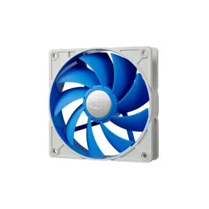 Deepcool UF120 120mm fan, rama ventilatorului este acoperita cu cauciuc pentru reducerea vibratiilor, doi rulmenti, 500-1500 RPM, 66.3 CFM, 17.6-27.8 dBA, conectori: 4 pin si Molex, 9 pale
