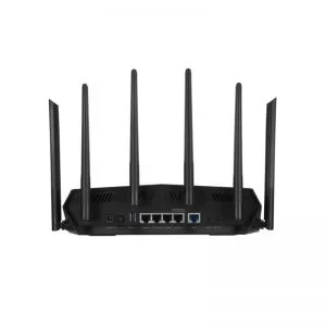 ASUS TUF Gaming AX5400 Dual Band WiFi 6 Gaming Router, Network Standard: IEEE 802.11a, IEEE 802.11b, IEEE 802.11g, WiFi 4 (802.11n), WiFi 5 (802.11ac), WiFi 6 (802.11ax), IPv4, IPv6, External antenna x 6, Transmit/Receive: 2.4 GHz 2 x 2, 5 GHz-2 4 x 4, Processor: 1.5 GHz tri- core, Memory: 256 MB Flash, 512 MB RAM, Ports: RJ45 for Gigabits BaseT for WAN x 1, RJ45 for Gigabits BaseT for LAN x 4 USB 3.2 Gen 1 x 1.