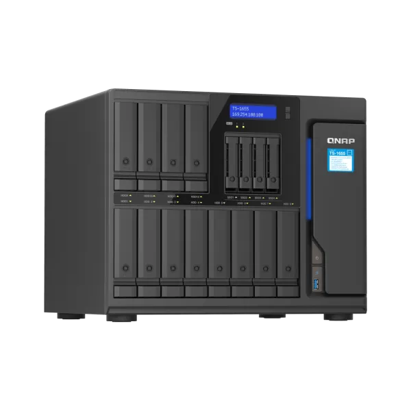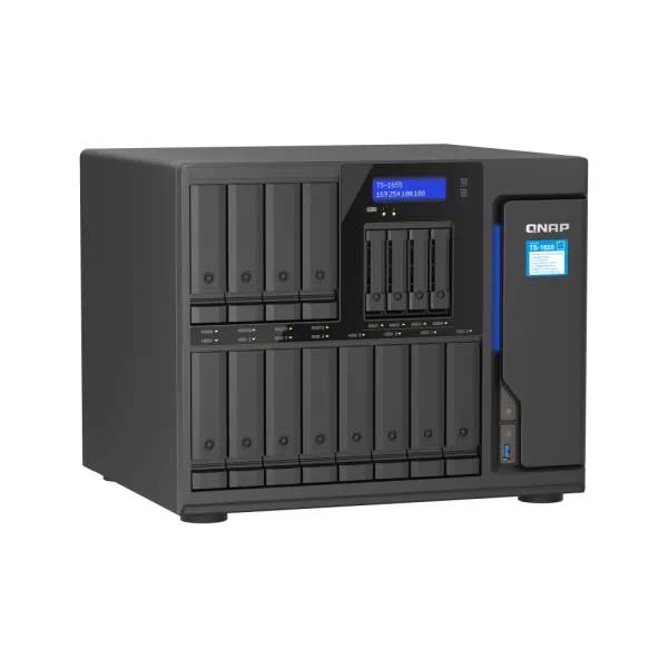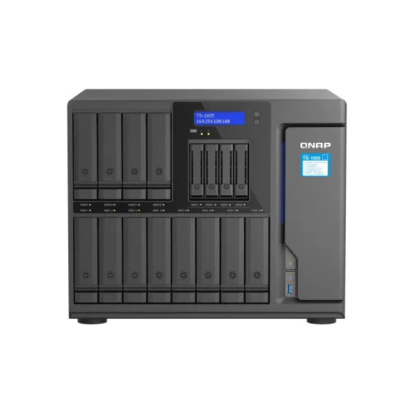 NAS QNAP 1655 16-Bay, CPU Intel® Atom® C5125 8-core/8-thread Processor, RAM 8GB DDR4 Long-DIMM non-ECC (1x 8GB), Max. 256GB ( 4 x 64G, ECC supported), 12 x 3.5"/2.5" SATA 6Gb/s HDD/SSD bay + 4 x 2.5" SATA 6Gb/s SSD bay + 2 x M.2 2280 PCIe Gen 3 x2 SSD slots HDD (neincluse), LAN: 2 x 2.5GbE (2.5G/1G/100M/10M), USB3.2 Gen2: 4, Tower, Single PSU, 550W, garantie 3 ani